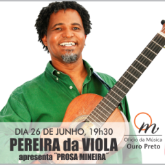de 26/06/2015 às 00H00 a 26/06/2015 àsO Ofício da Música, em Ouro Preto, sob a curadoria de Poti Castro, recebe Pereira da Viola no show “Prosa Mineira”. No palco, uma viola Rio Abaixo, outra viola em cebolão, um violão tradicional, um cuatro venezuelano e duas vozes. Este é o cenário da cantoria “Prosa Mineira”, com Pereira da Viola acompanhado pelo irmão Dito Rodrigues (violão). A apresentação ocorre no dia 26 de junho, sexta-feira, às 19h30, no Hotel do Teatro – Rua Costa Sena, 307, Ouro Preto. O projeto tem patrocínio da Gerdau e a entrada é gratuita.